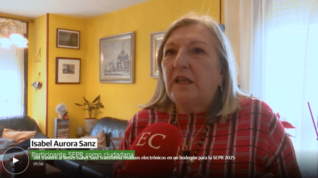 Esta propuesta convierte el hogar de Isabel en pequeño estudio artístico y en un espacio de sensibilización ambiental. El ejercicio artístico sirve como excusa para hablar de consumo, de obsolescencia y de la importancia de cerrar el ciclo llevando los aparatos a los canales adecuados de recogida y la difusión en redes multiplica el alcance y convierte un gesto doméstico en un pequeño relato compartido sobre economía circular. Isabel contó su iniciativa y sus objetivos en el programa especial de radio de la SEPR, que se puede escuchar completo aquí.