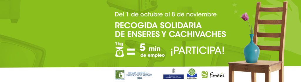 COGERSA, en colaboración con esta organización y con diversos ayuntamientos asturianos pondrá en marcha entre el 15 de octubre y el 15 de noviembre una recogida masiva de enseres y cachivaches con fines solidarios. La acción común, enmarcada dentro de la Semana Europea de Prevención de Residuos 2015, pretende concienciar a los asturianos y asturianas del valor de prolongar la vida útil de los productos, de participar en los canales de compraventa de segunda mano, además de promover el hábito de la reutilización y concienciar en valores de cooperación y solidaridad.